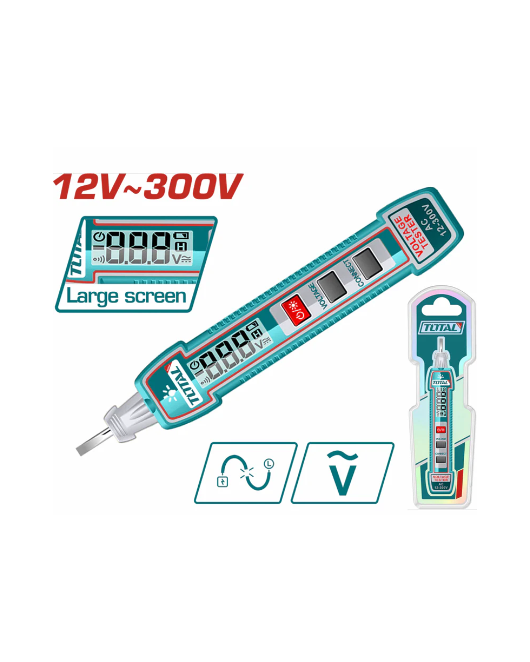 Medidor Probador De Voltaje De Lápiz AC 12-300V. Pantalla LCD Digital. Automotriz